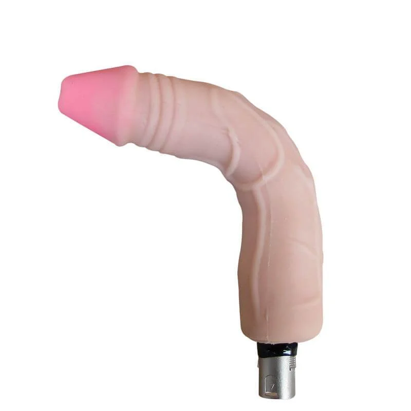 Dildo repuesto para sex machine elaborado en silicona, diseño tipo realista con testículos, tiene un núcleo interno con vertebra que permite doblar el dildo para lograr una mayor estimulación, además de un cómodo tamaño y grosor para facilitar la penetración producto del movimiento repetitivo que se genera mediante el control de la machine.