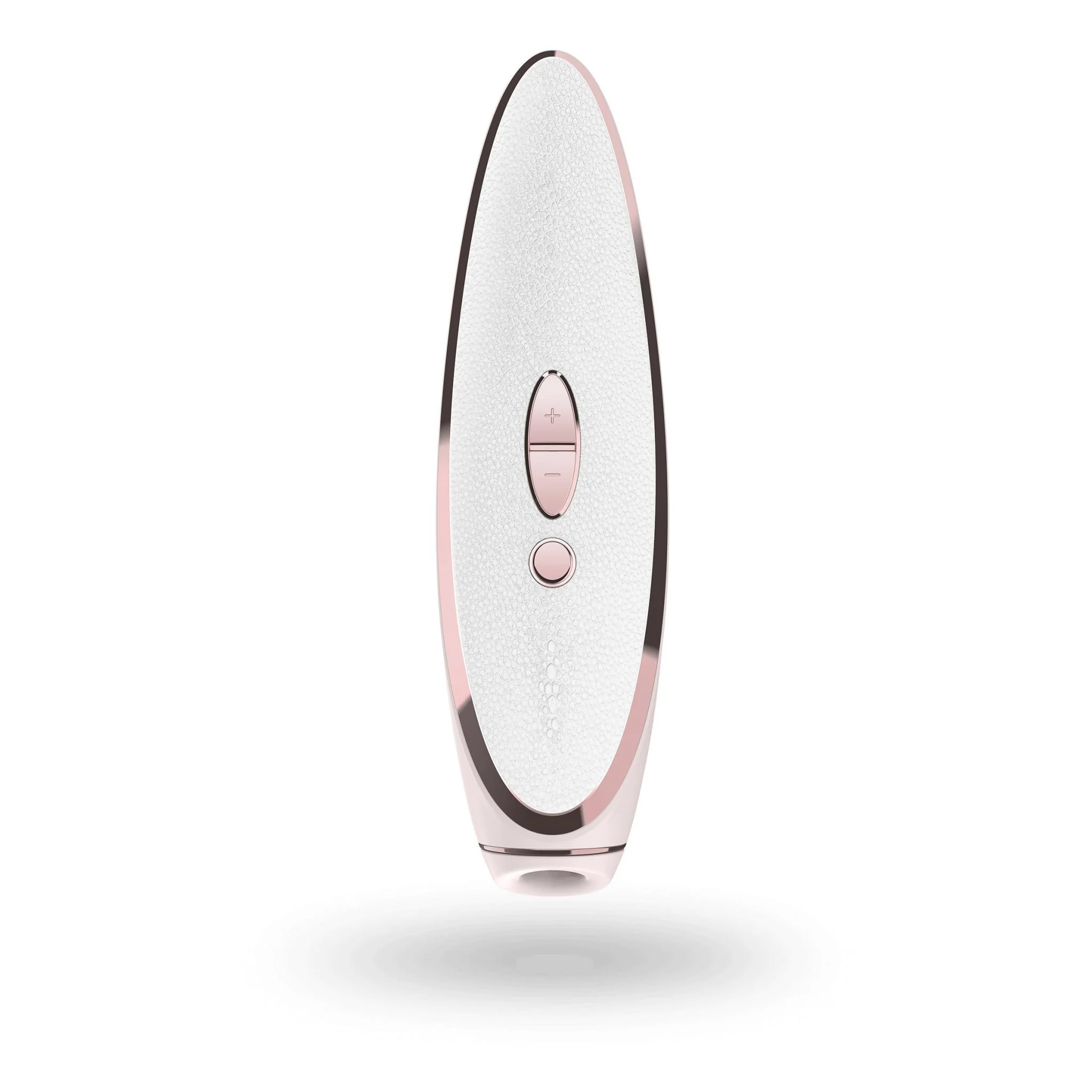Para usarlo, mantén pulsado el botón de mando durante 2 segundos para encender el juguete en modo vibración de allí mismo cambia los ritmos. Satisfyer Prêt-a-porter con el botón (+) activará las ondas de presión en el nivel más bajo, aumente la estimulación y también apaga, del botón (-) puedes disminuir la intensidad.